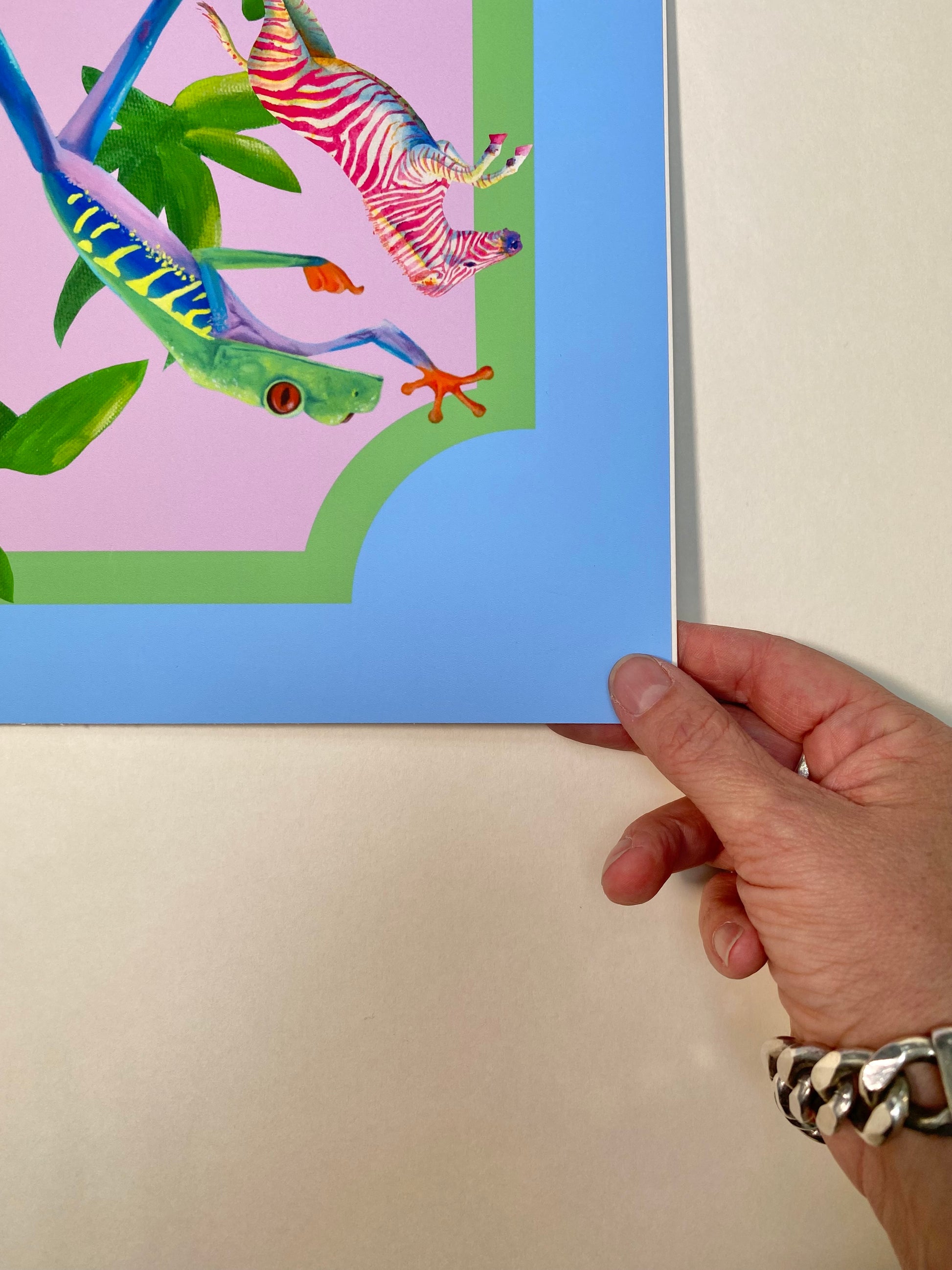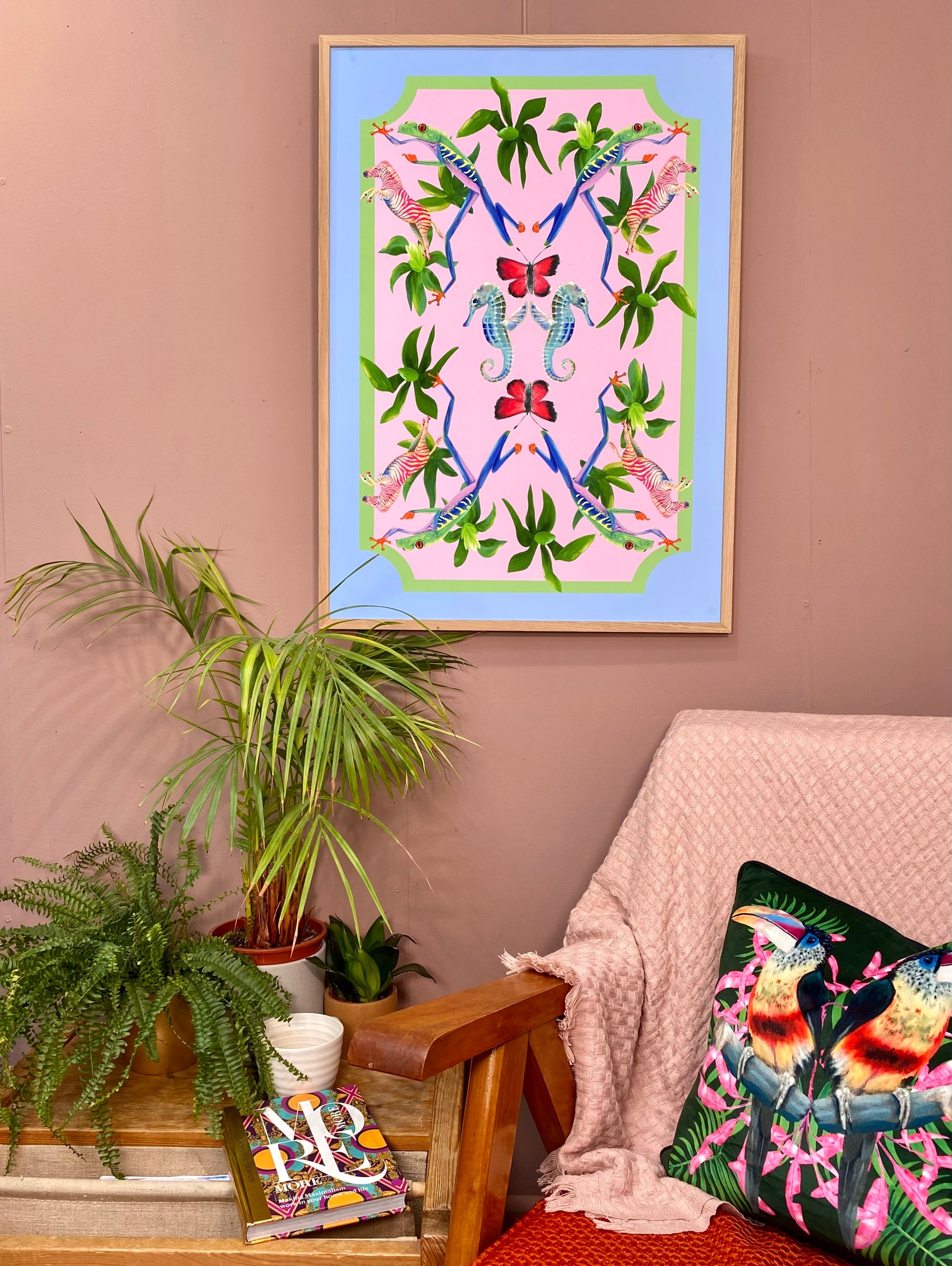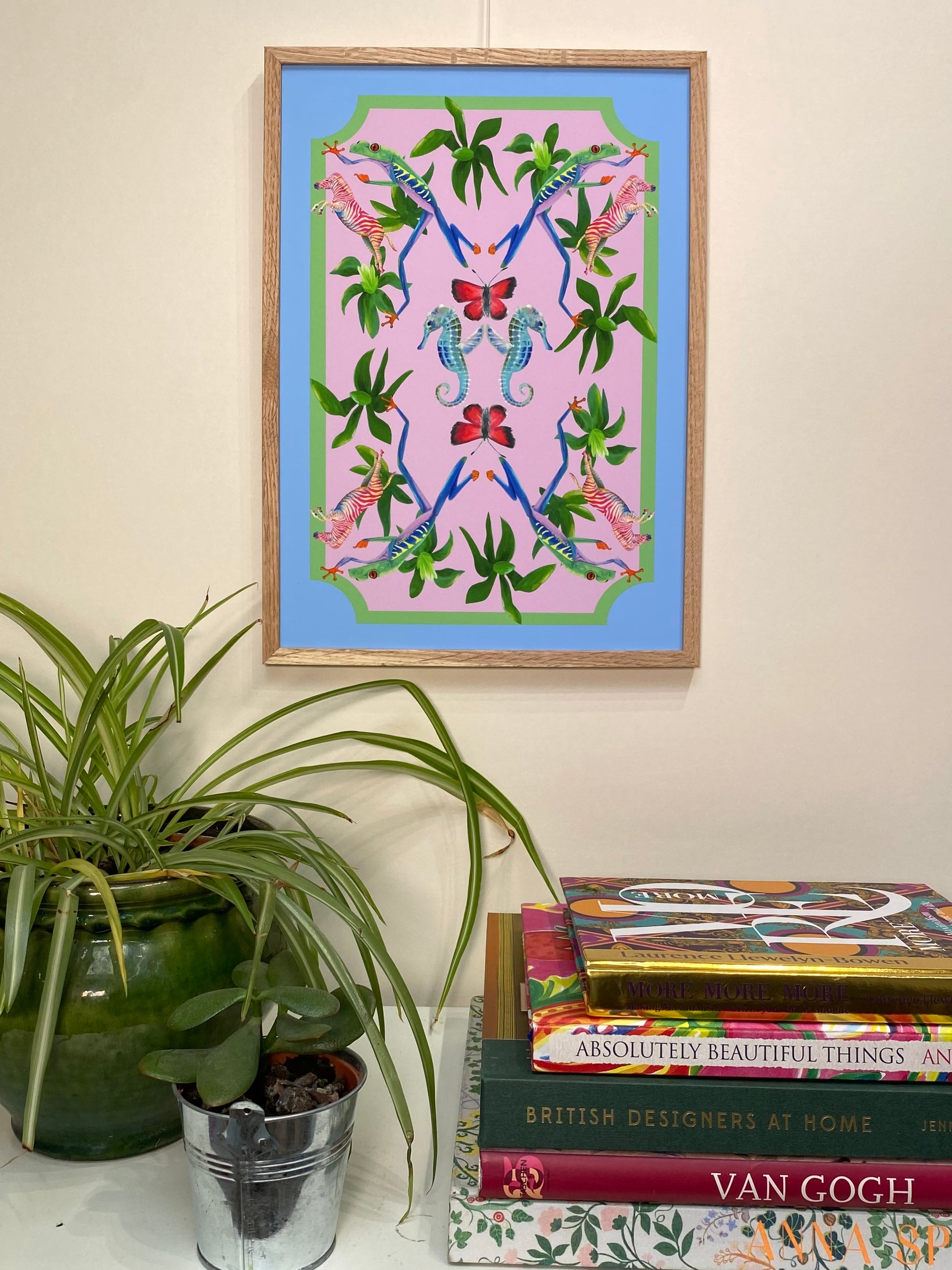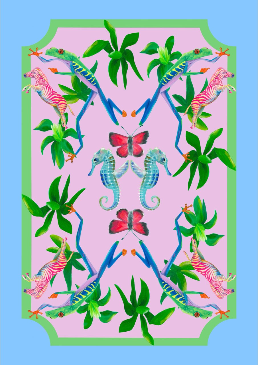 Leaping frogs, seahorses and zebra might not normally be found together, but in my Millicent print all the rules have been thrown out of the window and fantasy wins the day!