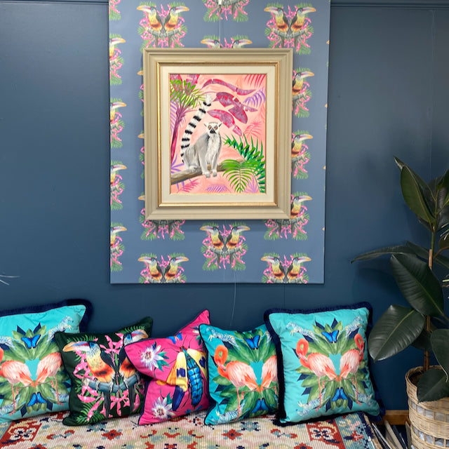 Inspired by my love of all things colourful this Toucan wallpaper is taken from one of my original oil paintings, and has been digitally collaged to create this stunning maximalist pattern.